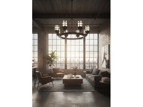 Ta lampa to klasyczny przykład oświetlenia w stylu industrialnym z silnymi wpływami estetyki średniowiecznej i rzemieślniczej.