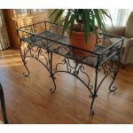 Nawiązanie do Mid-Century Modern: Charakterystyczne, zwężające się ku dołowi nogi (tzw. tapered legs) przypominają styl mebli z lat 50. i 60. XX wieku, ale w znacznie cięższym, metalowym wydaniu.