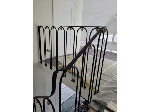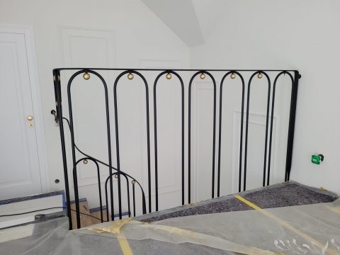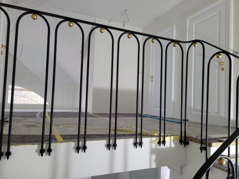 Ta balustrada to świetny przykład nowoczesnego rzemiosła, które łączy klasyczną elegancję z minimalistycznym, niemal biżuteryjnym detalem. Balustrada charakteryzuje się lekką, rytmiczną formą. Zamiast tradycyjnych, prostych tralek, zastosowano tu smukłe pręty wygięte w kształt wydłużonych łuków (tzw. "u-shape").