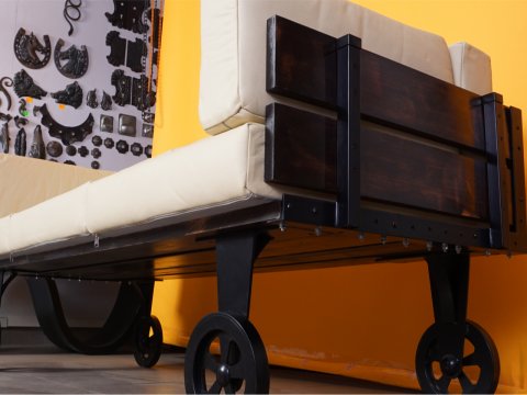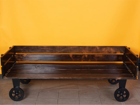 Wagon - kanapa kuta na kołach - drewno, metal, skóra kx023